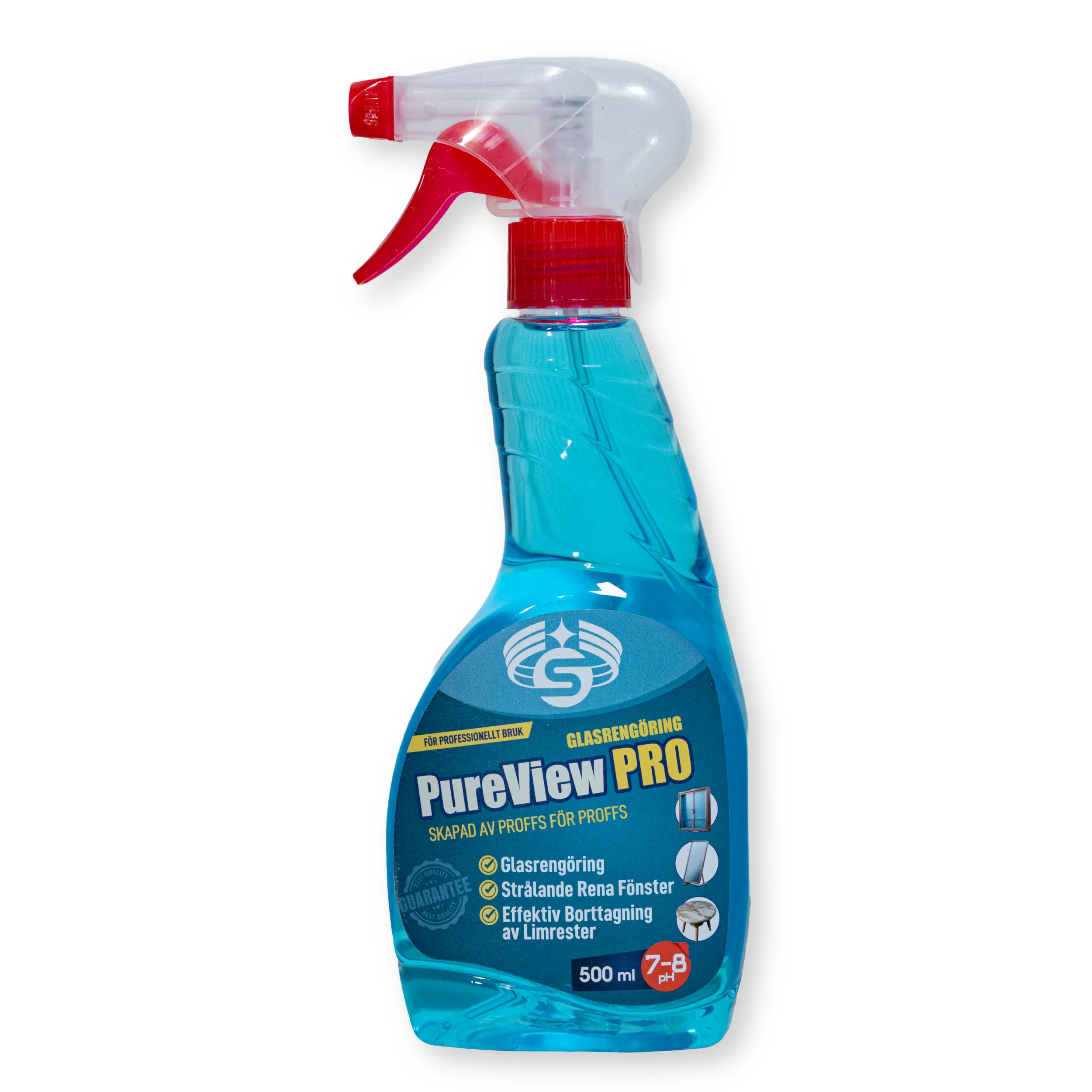 PureView Pro är en professionell glasrengöring som ger kristallklara ytor utan ränder och löser effektivt limrester från etiketter och tejp. Snabbtorkande, neutral pH och skonsam mot alla ytor.